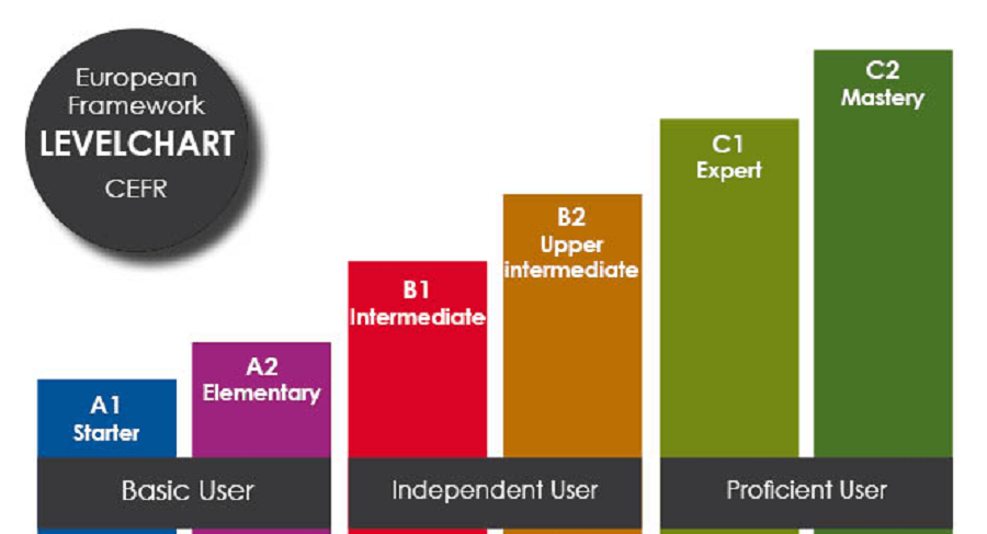 Hệ thống xác định các cấp độ tiếng Anh khác nhau là CEFR, Khung Tham chiếu Ngôn ngữ Chung của Châu Âu.